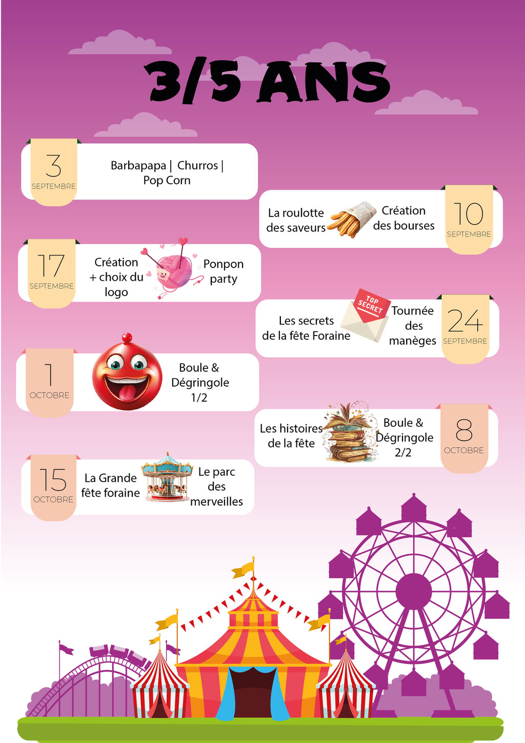 Cette période sera placée sous le signe de la découverte et de l’amusement avec la thématique : « La Fête Foraine » 🎉.