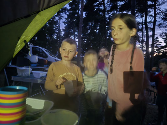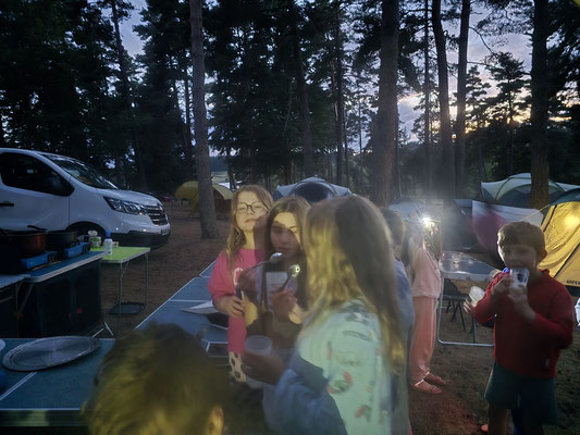 En fin de journée, la pluie a cessé, ce qui nous a permis de partager le repas du soir en extérieur dans une ambiance conviviale.