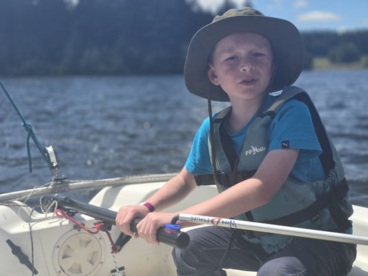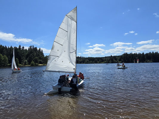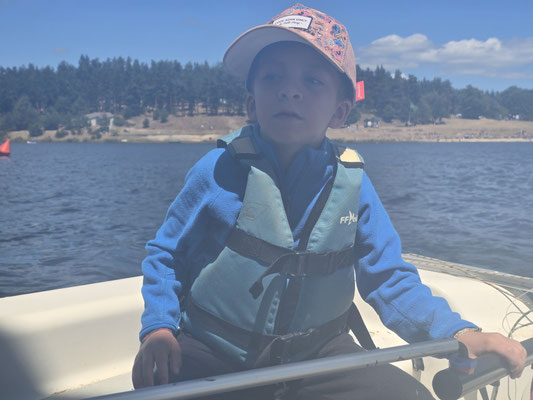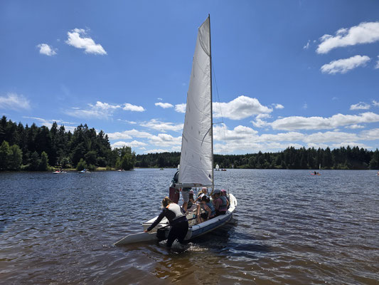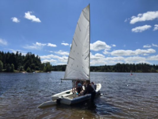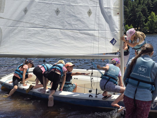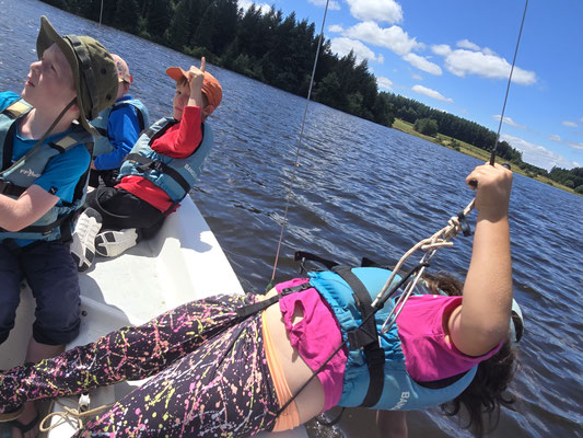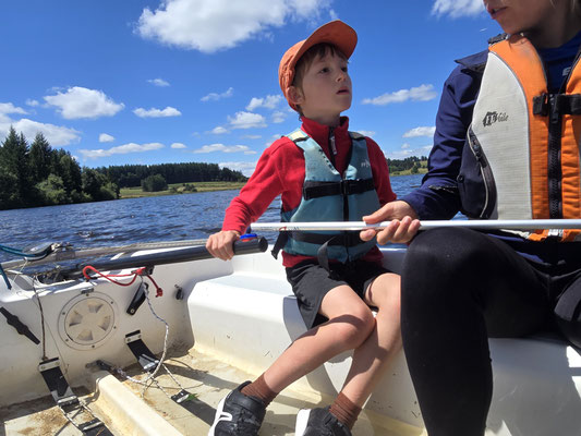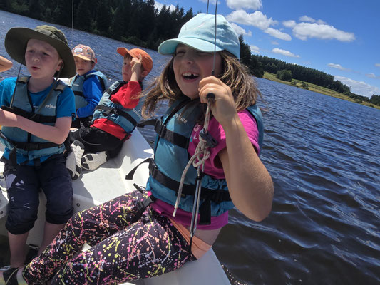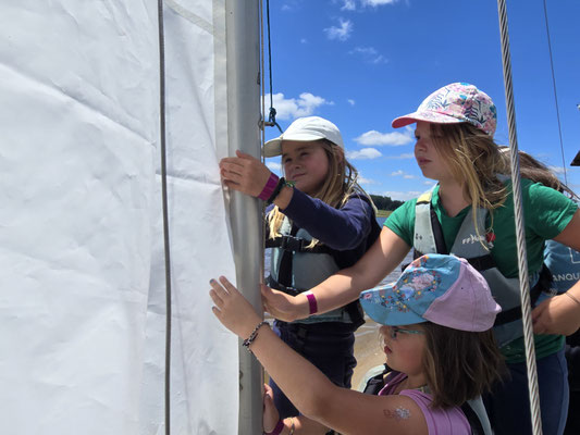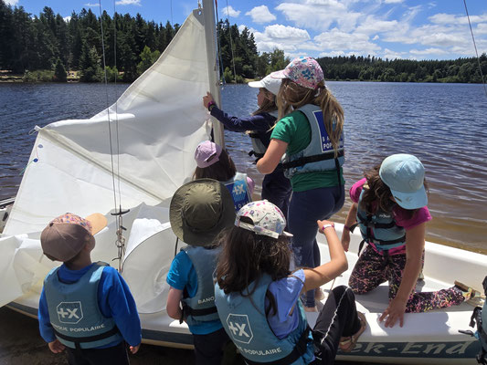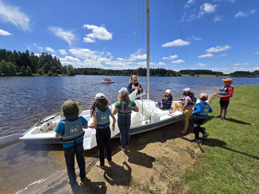 Nous avons profité de cette belle journée pour faire une promenade en bateau à voile : les enfants ont participé activement à la navigation, au montage et au démontage de la voile. Une belle