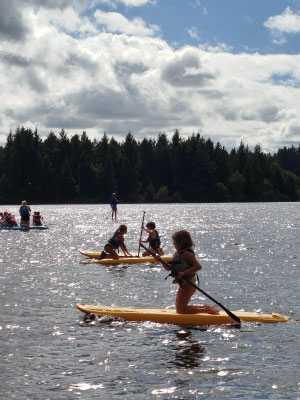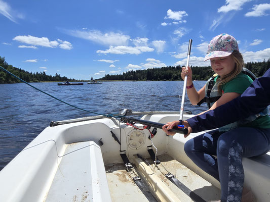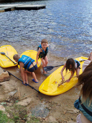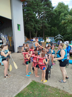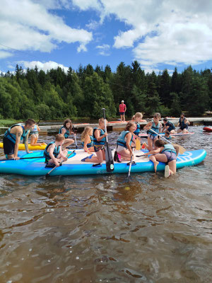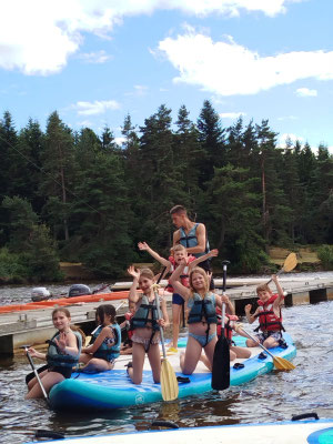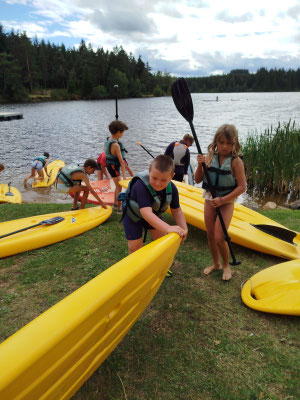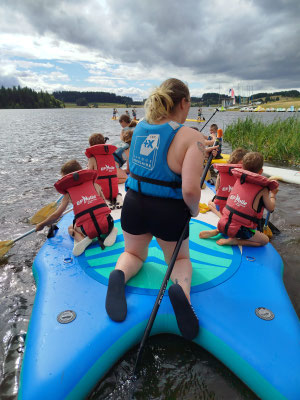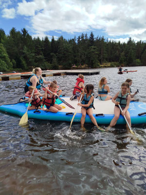 Les enfants ont déjà bien profité de leur première journée : au programme, paddle sur le lac et baignade dans une ambiance joyeuse malgré une météo un peu capricieuse.