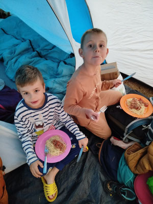 Après une première nuit fraîche, nous avons pris les devants pour assurer le confort des enfants en allant chercher des couvertures supplémentaires pour cette deuxième nuit .
